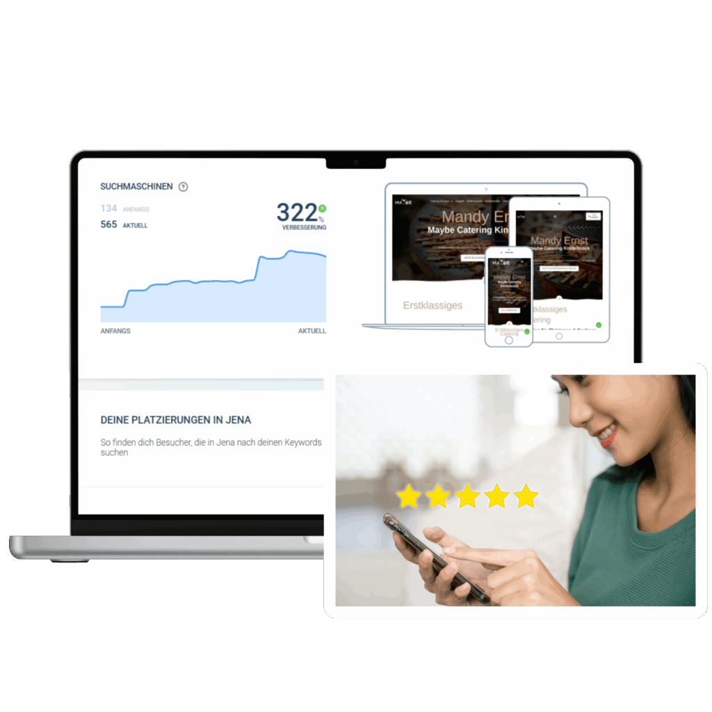 Mehr Klicks, mehr Anfragen, mehr Umsatz: Dein Catering-Unternehmen gehört ganz nach oben bei Google & Co. Durch gezielte SEO-Maßnahmen, starke lokale Rankings und einen professionellen Google-Maps-Auftritt wird Deine Website dort sichtbar, wo Deine Kunden suchen – und zuverlässig geklickt.